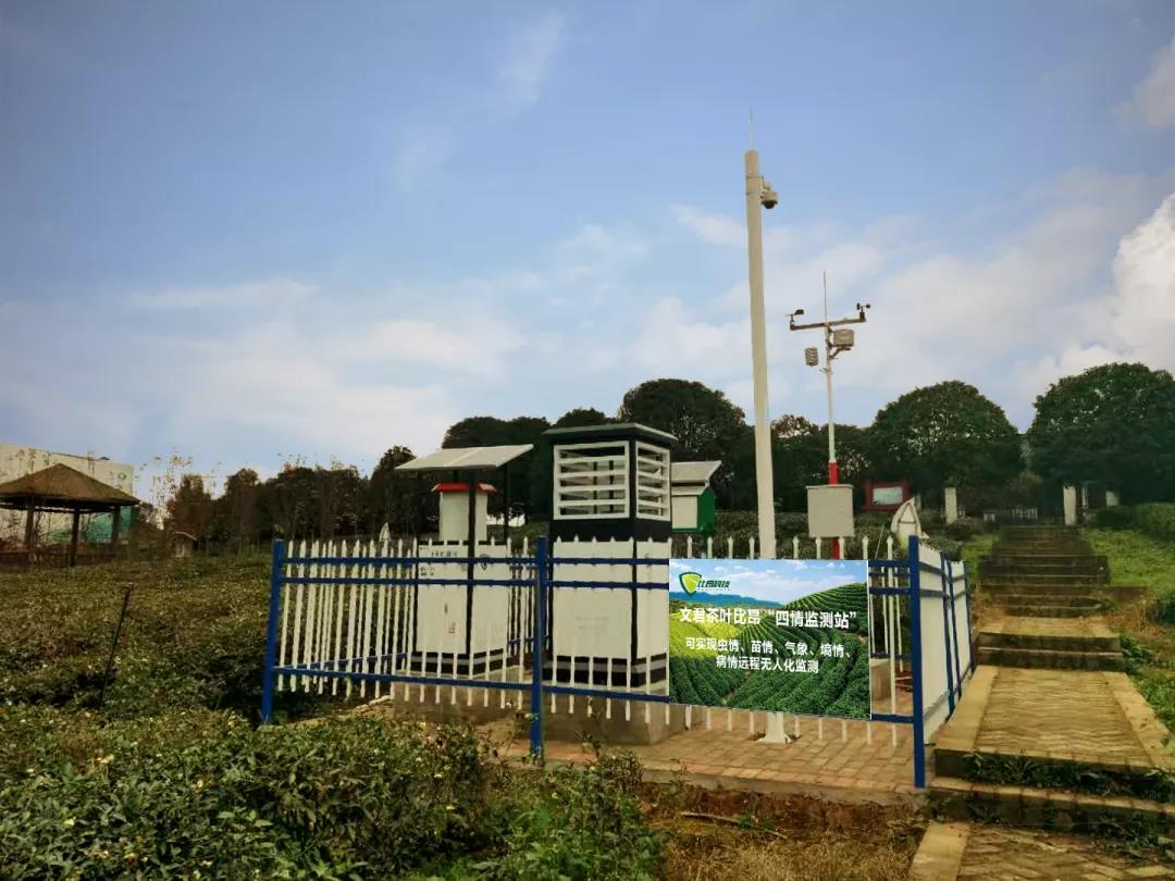 在文君茶物联网示范基地内,还建立了1套统一化、标准化的综合气象站,实时观测空气温度、湿度、光照、风速、风向、气压、降雨量、二氧化碳浓度、硫化氢浓度、氨气浓度等,对以上气象进行测量和数据统计、上报参数,并实时上传服务器,随时监测茶树的生长环境,确保农作物在一个正常适宜的环境下成长。在茶园内,同时综合布置了1套苗情监测设备,可以定时、定点拍照和连接物联网,自动采集茶园的病虫害情况、茶叶生长情况等。另外,在示范基地内设立了1套远程自动孢子捕捉仪,连接物联网控制中心。空气中孢子数量与区域内作物病害的情况密切相关,远程孢子捕捉仪通过捕捉空气中病菌孢子并远程监测分析掌握这一时期空气中孢子的出现和数量动态,这是预测最终病情和决定第一次施药期的条件和依据。