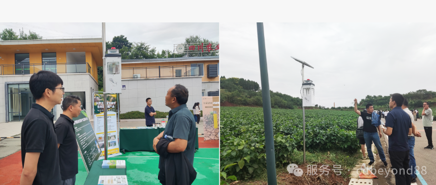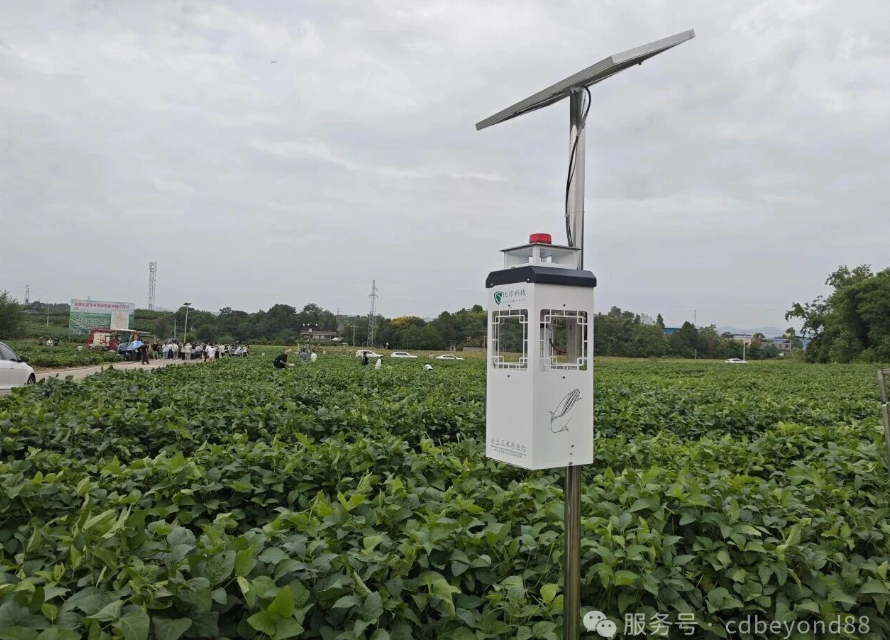 在仁寿粮食园区的大豆玉米带状复合种植技术示范基地中,比昂科技实地展示了大豆玉米杀虫灯的优异防控效果,对豆荚螟、斜纹夜蛾、甜菜夜蛾、点峰缘椿等主要害虫诱杀效果显著,该产品集成了杀虫与驱鸟双重功能,实现了从播种到收获的全周期“虫鸟双防”,有效降低作物损失,为提升单产提供了可靠保障。