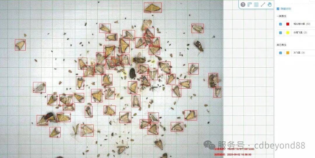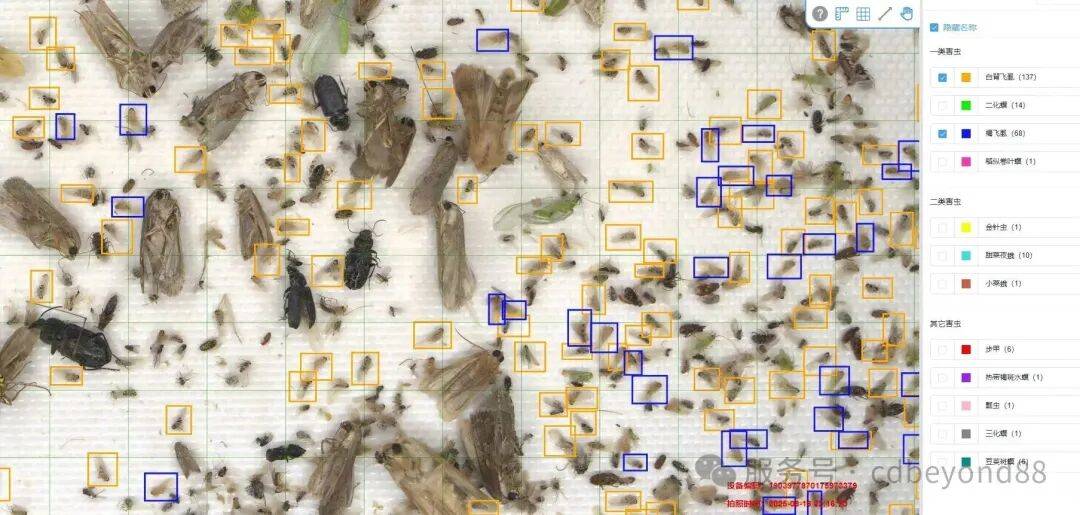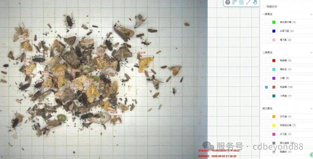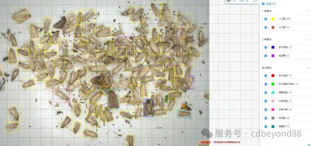 比昂科技远程信息化虫情测报系统2020年至今,不断迭代升级产品性能、参数、质量、功能。近期,比昂科技虫情识别模型再次升级,在最新的识别模型下,针对水稻、玉米、油菜、大豆等粮食作物,果蔬、棉花等经济农作物,实现稻纵卷叶螟、玉米螟、二化螟、棉铃虫、甜菜夜蛾、八字地老虎、桃蛀螟、蝼蛄等国家一类、省级二类农作物趋光性害虫测报全覆盖,测报能力和精准度再上新的台阶。其中,针对高峰期虫体堆叠现象,比昂科技研发了堆叠识别模型及虫体堆叠反控装置,提升害虫识别率。