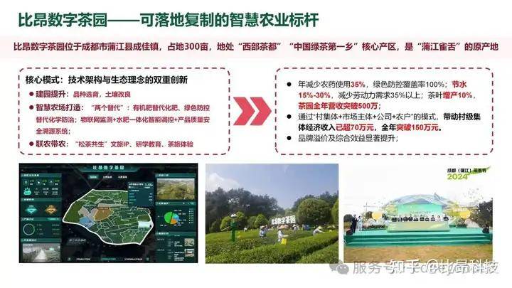 通过这种模式,比昂科技成功助力项目所在地实现了一二三产融合。在比昂数字茶园,茶园依托绿色生态种植模式保障茶叶品质,目前已获评蒲江县“两个替代”基地建设示范单位,其茶园绿色防控新技术获《四川农村日报》报道肯定,茶叶产品也取得有机认证。在经济效益方面,通过推广绿色防控技术,茶园化肥农药用量减少30%至50%,同时借助文旅活动带动村集体经济增收,成为了乡村振兴的经典案例,为现代农业的可持续发展提供了可复制的“比昂样板”。
